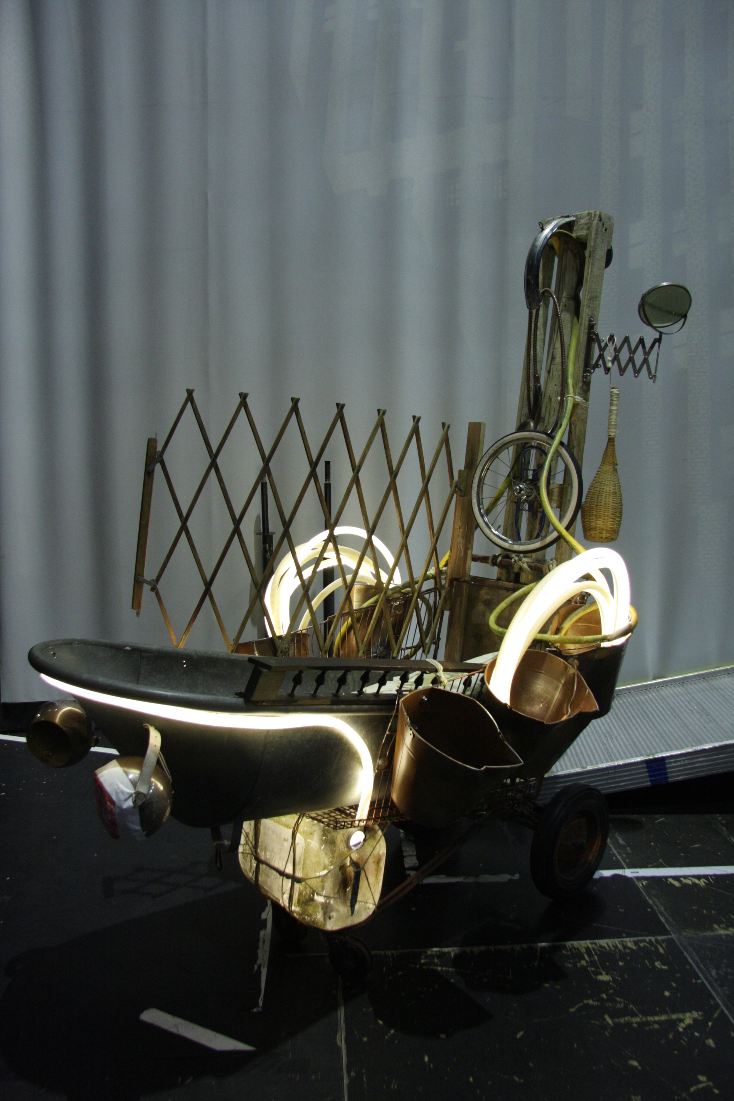 The Atelier Nils Rousset collaborated with director Pascal Obispo and Adam and Eve Productions for the musical “Adam & Eve: The Second Chance”, which debuted January 31, 2012 at the Palais des Sports de Paris. We created a number of theatrical props for this production, such as garlands, bureaus, bullhorns and more… all created from found objects.
