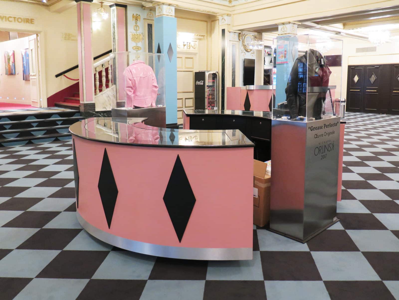 For Grease, the celebrated musical produced by Stage entertainment, the Atelier Nils Rousset designed and constructed a décor that plunged the audience into a world of retro rock n’ roll. The Atelier created the custom-made dressings that covered the posts and pillars of the Mogador, infusing the theater with a real 50s Ambience: snapy, shiny, colorful, and joyous!