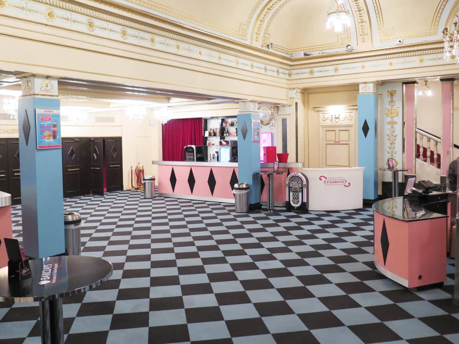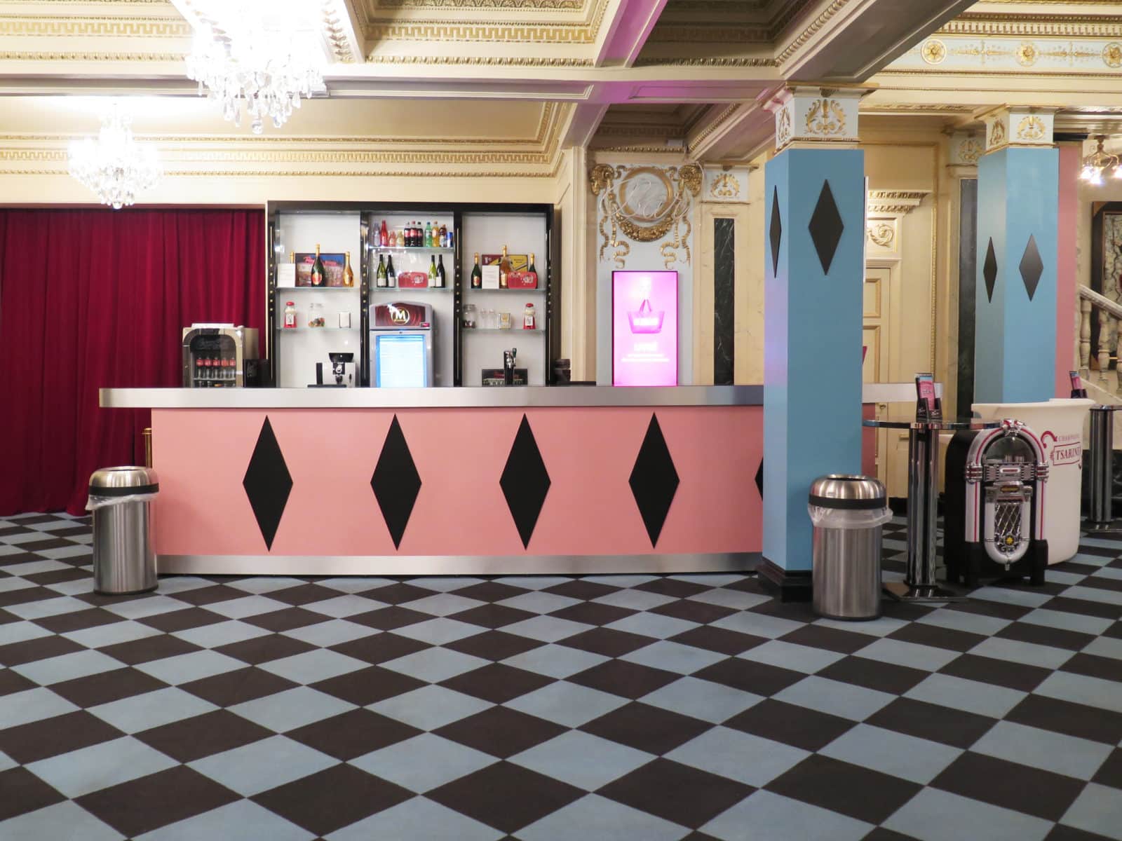 The Atelier Nils Rousset transforms the furnishing in the Mogador’s foyer into a 1950’s diner. This décor dresses the theater for the 2017-2018 theatrical season.