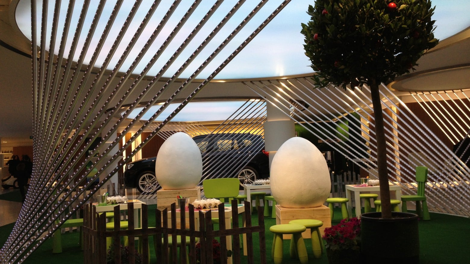 In collaboration with Moon Event and for the occasion of Easter Sunday 2013, we created a farm-themed Easter egg hunt. The event was comprised of a number of interactive workshops, a garden of funhouse mirrors and a farm, all rolled out in the BMW concept store.