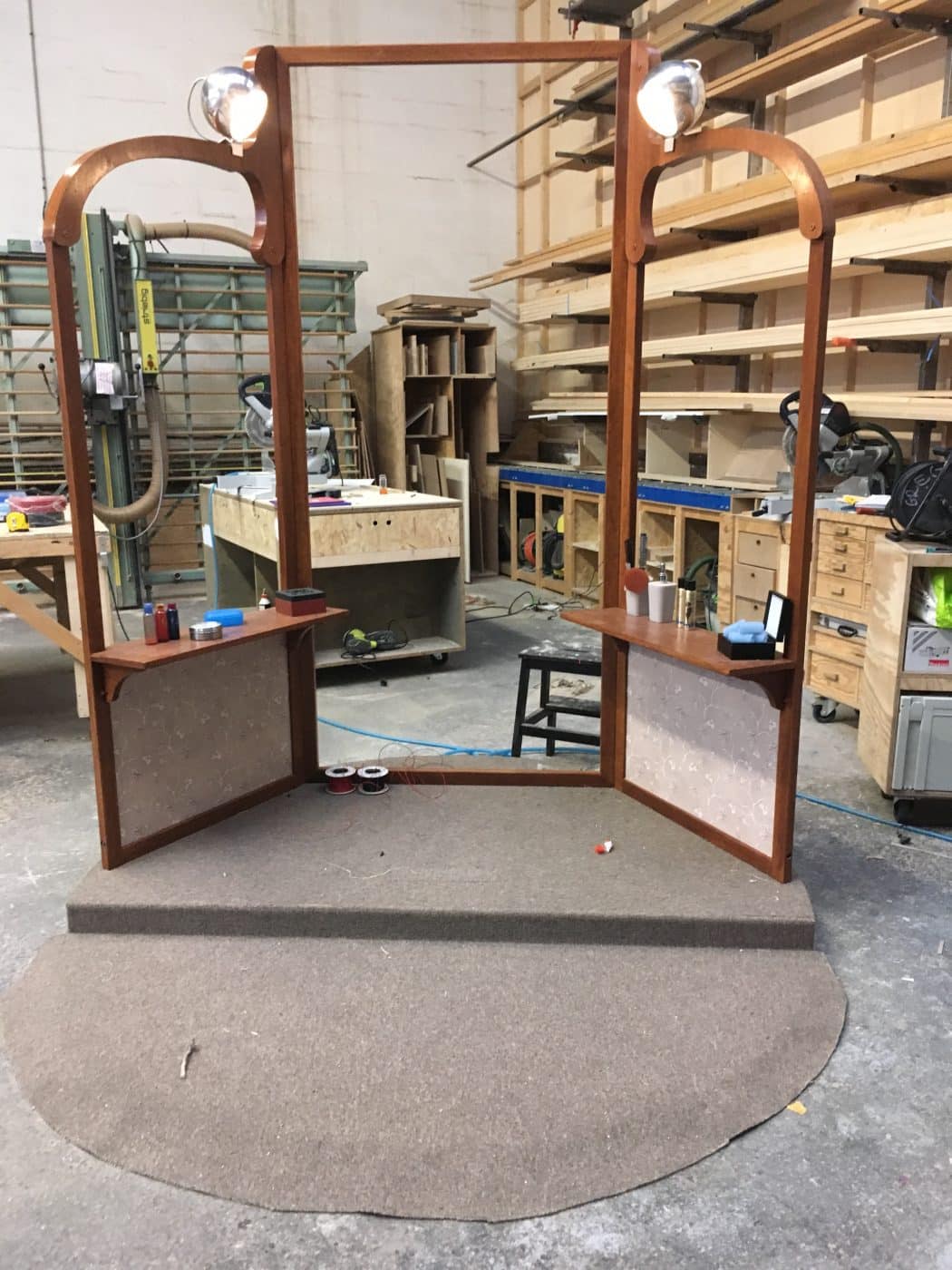 Reproduction of a vanity mirror for Tony’s room: steel structure painted in faux wood