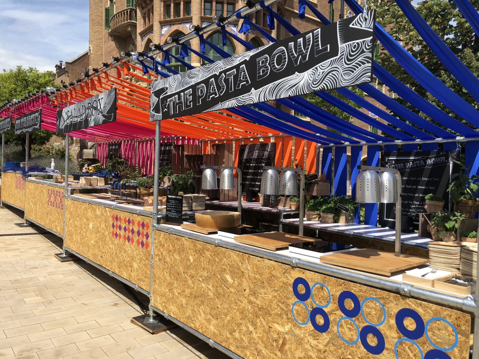 L'agence Nteractive a fait appel à l'atelier Nils Rousset pour créer la scénographie d'un évènement privé de musique à Barcelone. L'évènement est scindé en deux espaces: un espaces extérieur avec une scène ouverte et des stands culinaires puis un espace underground avec une piste de danse.