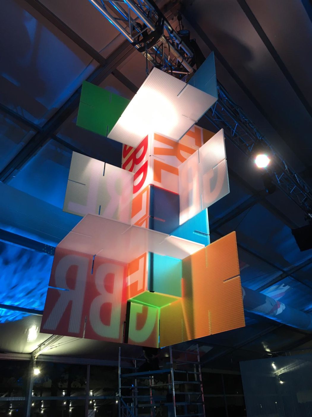 Conception et fabrication de sculptures lumineuses avec 2 enjeux. pour l'agence Nteractive consulting Premier objectif: servir de signalitique pour aider le publique à se repérer par secteur Deuxième objectif: être éclairant et décoratif