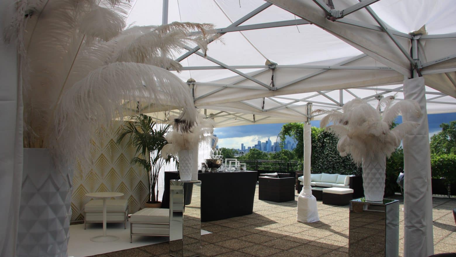 Un cabinet d'avocat parisien nous a sollicité pour scénographier une soirée d'été ... Ambiance Gatsby, plumes et toiles peintes pour parer leur terrasse.