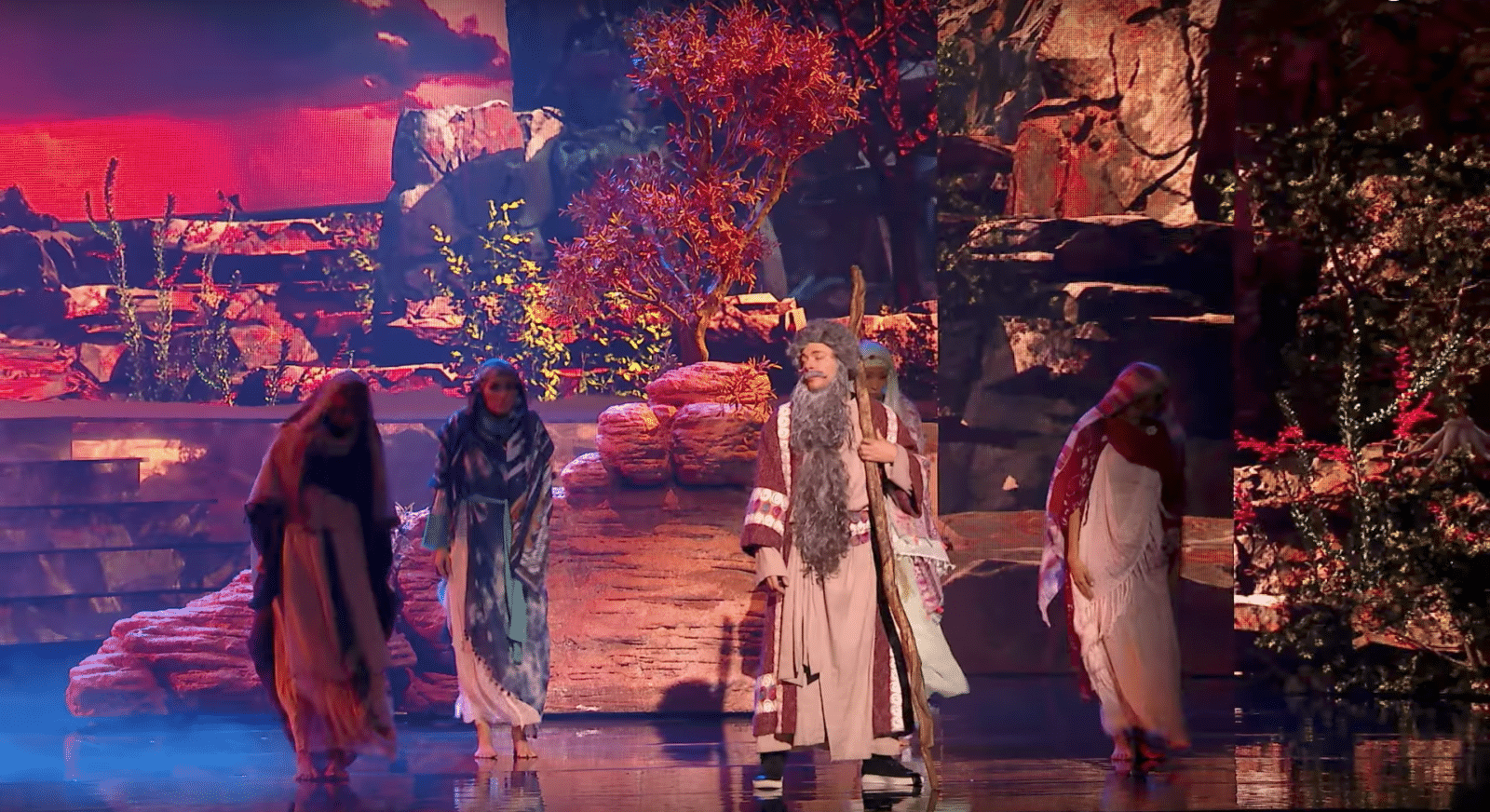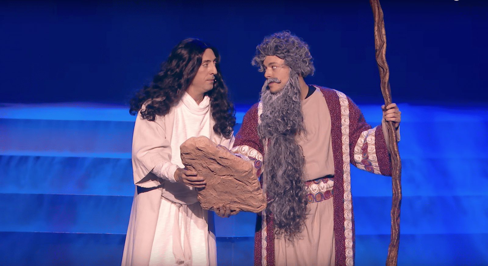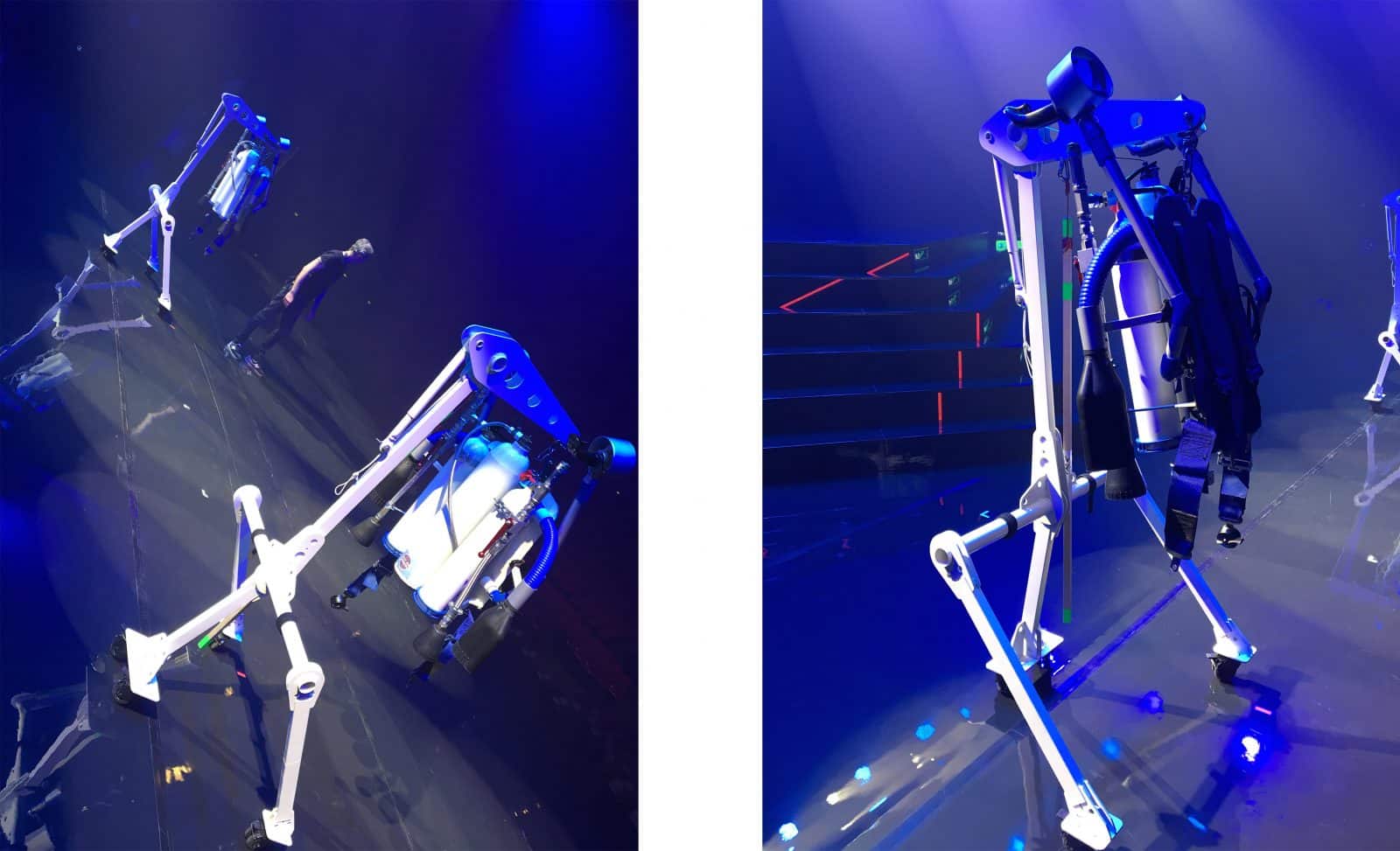 L'Atelier Nils Rousset a confectionné pour le spectacle des deux humoristes bon nombre d'accessoires, une sculpture du mont Sinaï en polystyrène résiné, des supports pour jet packs en acier, un chien sur roulettes...