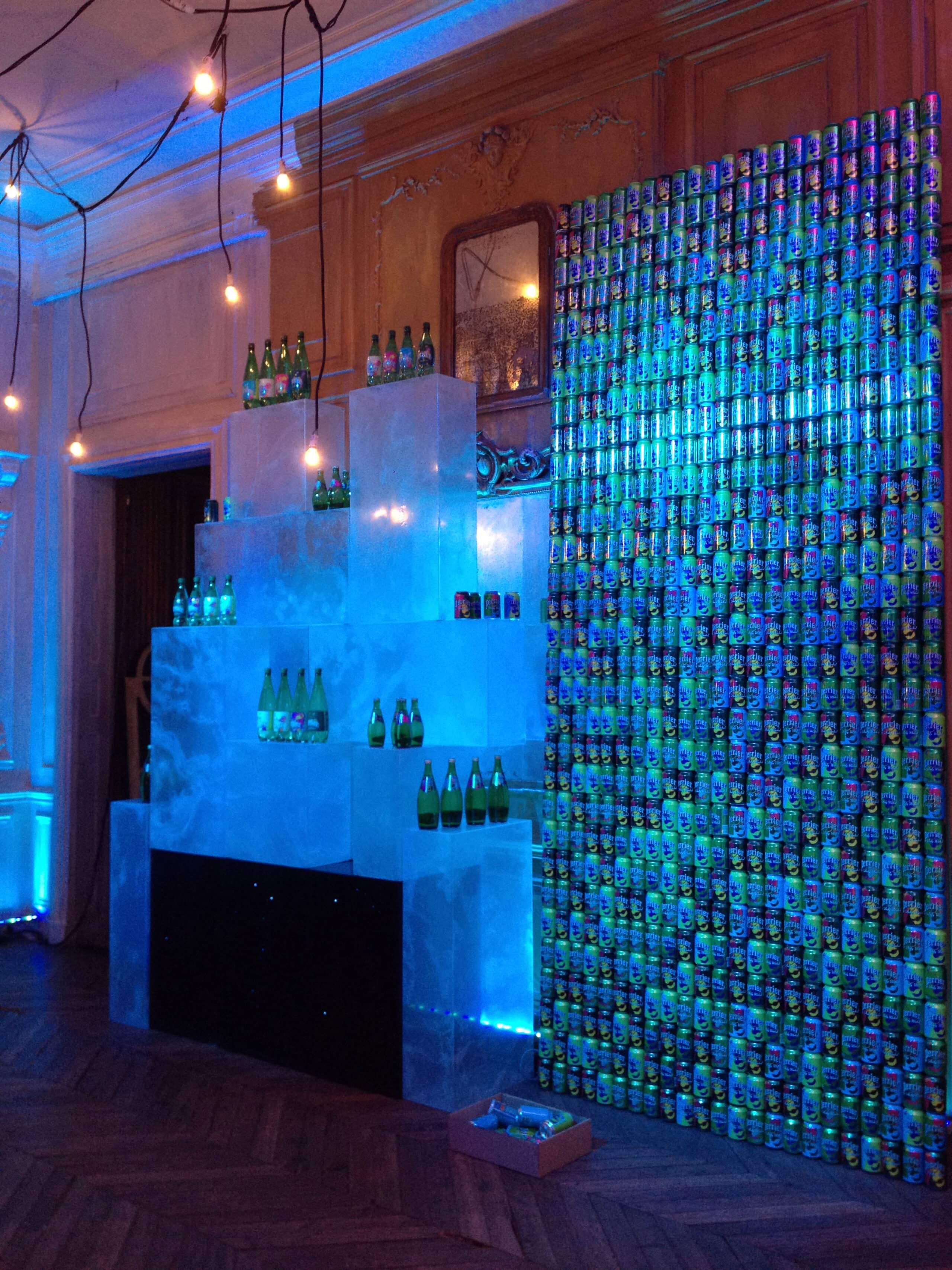 En collaboration avec l'agence l'Arbre à souhait nous avons fabriqué pour les 150 ans de la maison Perrier et le lancement des nouvelles bouteilles de la célèbre eau gazeuse les décors de la présentation presse.
